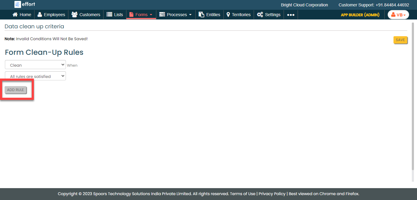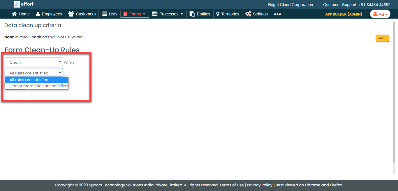 Select the form for which you want to configure data clean up.