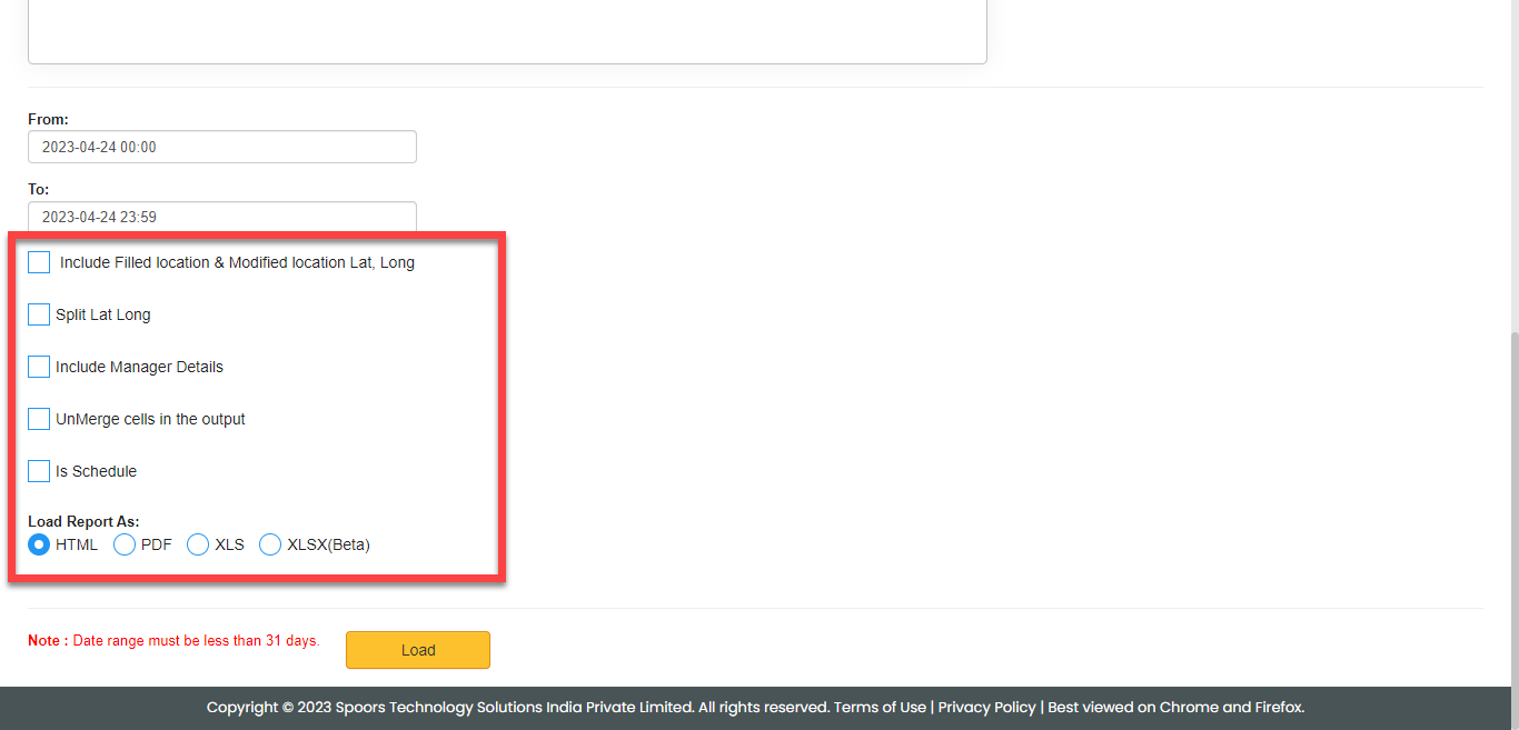 - Optional: Select report format for Load Report As.