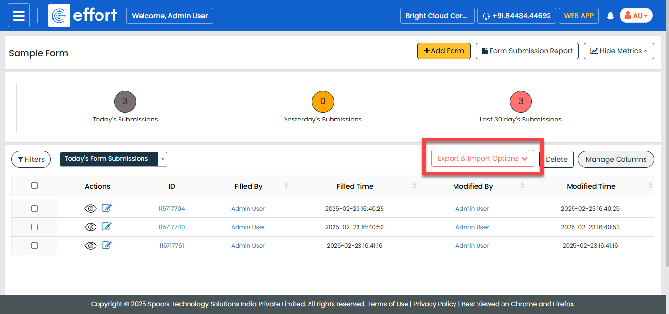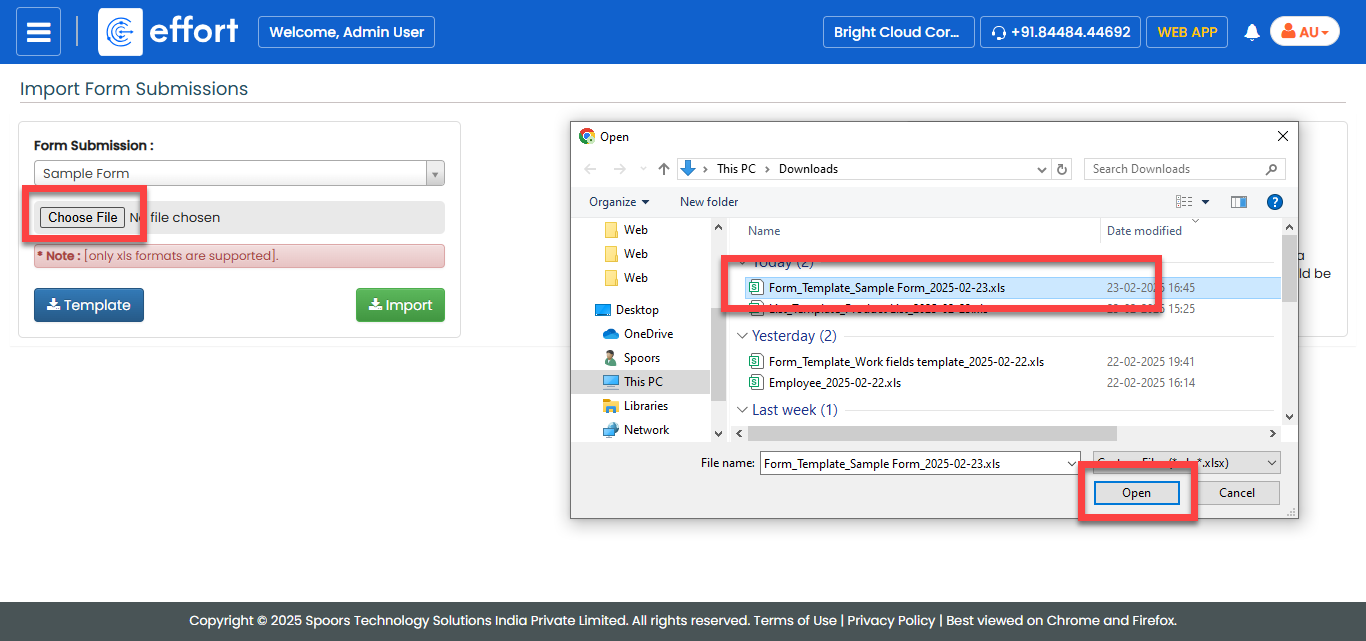 Follow the below step to import form submissions in the Web App. It allows you to submit more than one form in one go.