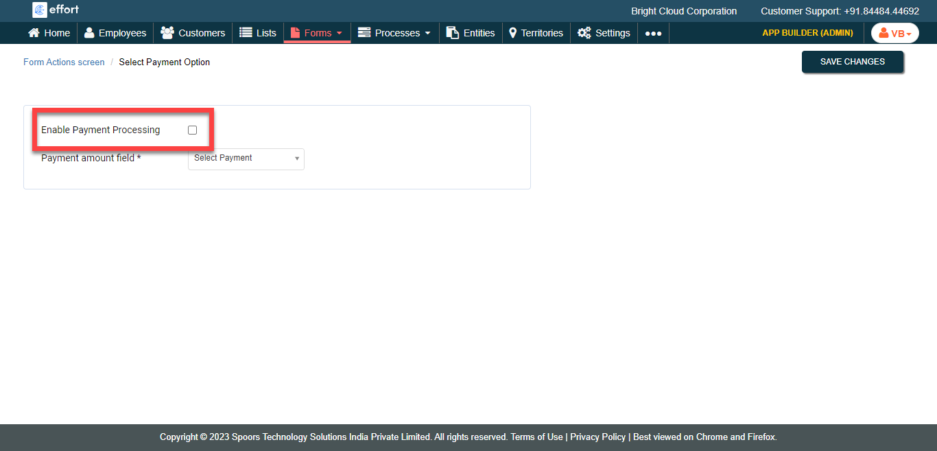 Enable the Enable Payment Processing checkbox.