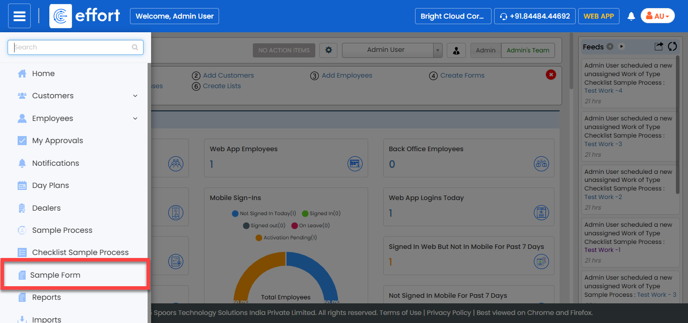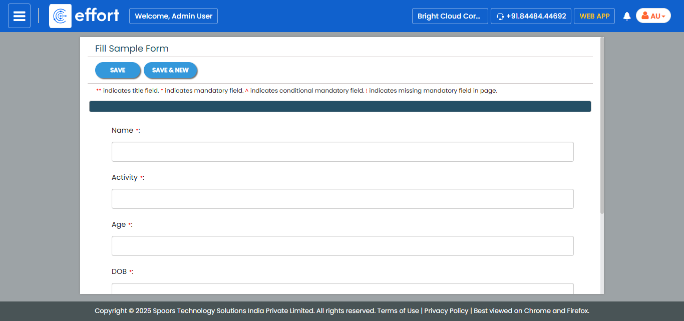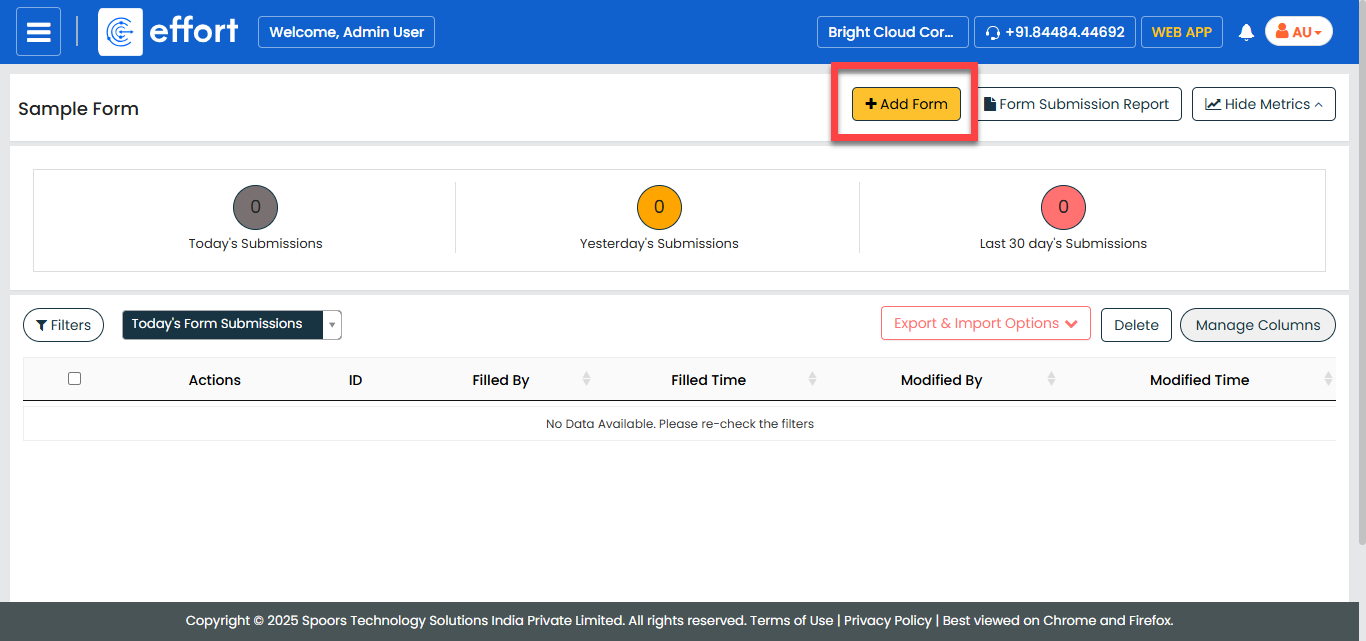 Note:The form shown in the screenshot is a sample. Click on the required form to proceed. If you don’t see any forms, contact your administrator.