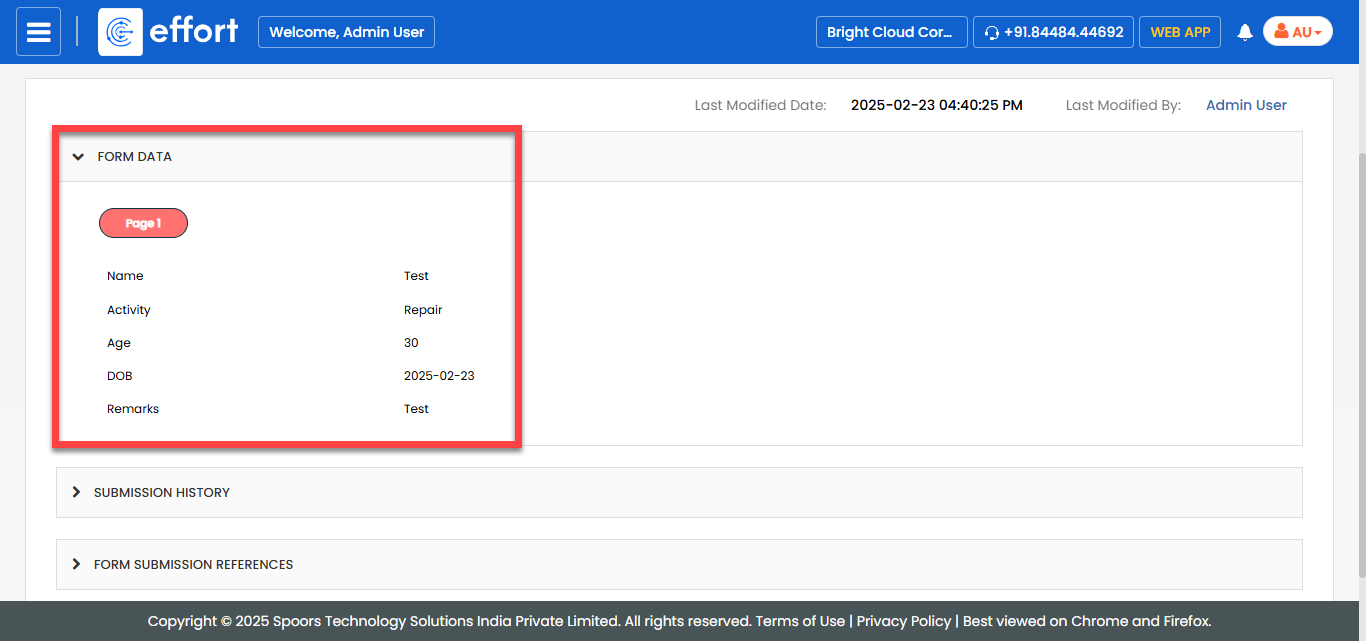 Note:The form shown in the screenshot is a sample. Click on the required form to proceed. If you don’t see any forms, contact your administrator.