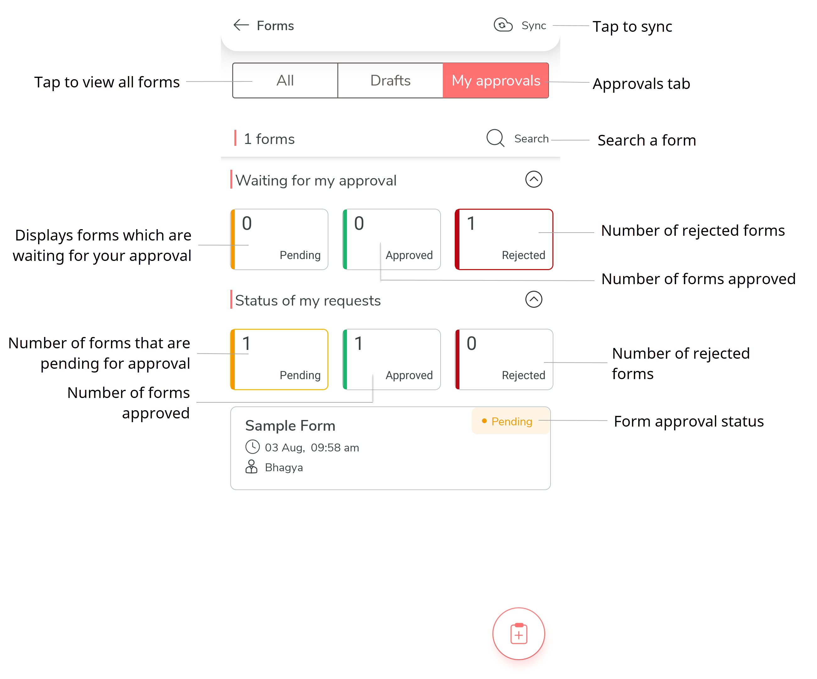 This topic helps you understand how to check the status of submitted forms and view any forms awaiting your approval. You can track whether forms are pending, approved, or rejected directly from the mobile app.