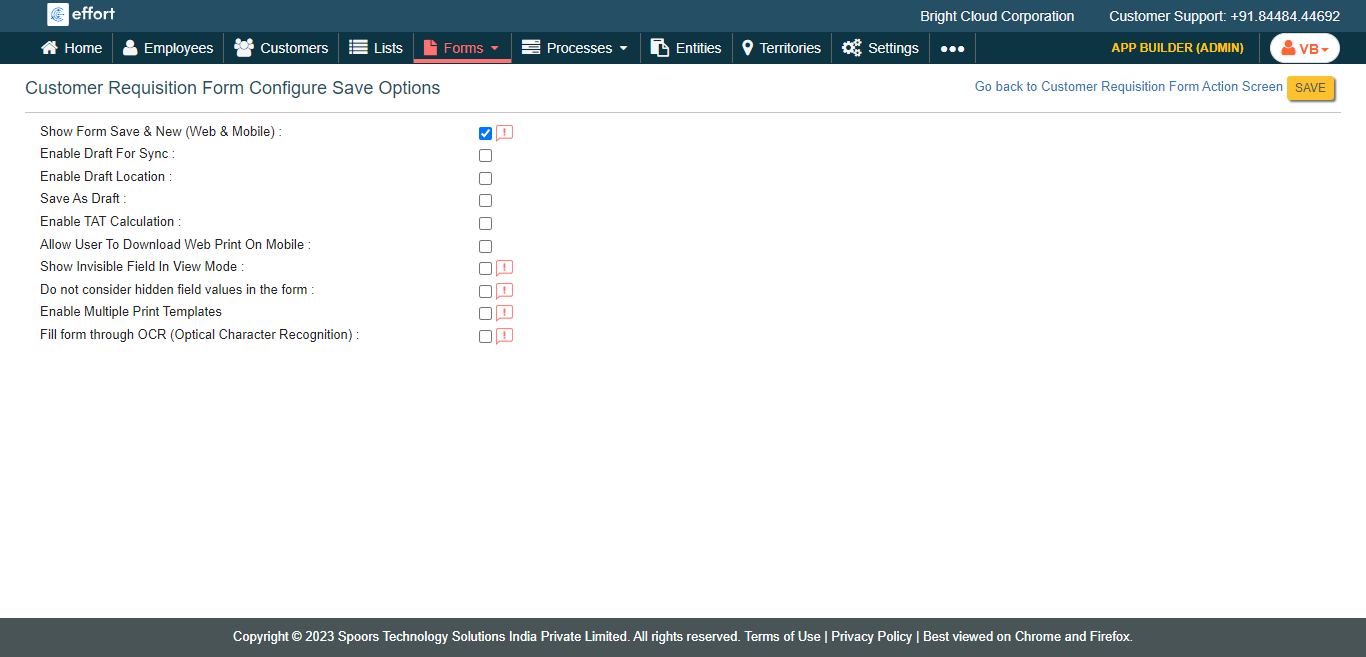- Show Form Save & New (Web & Mobile): Shows the "Save & New" option while saving the form in the web and mobile apps.