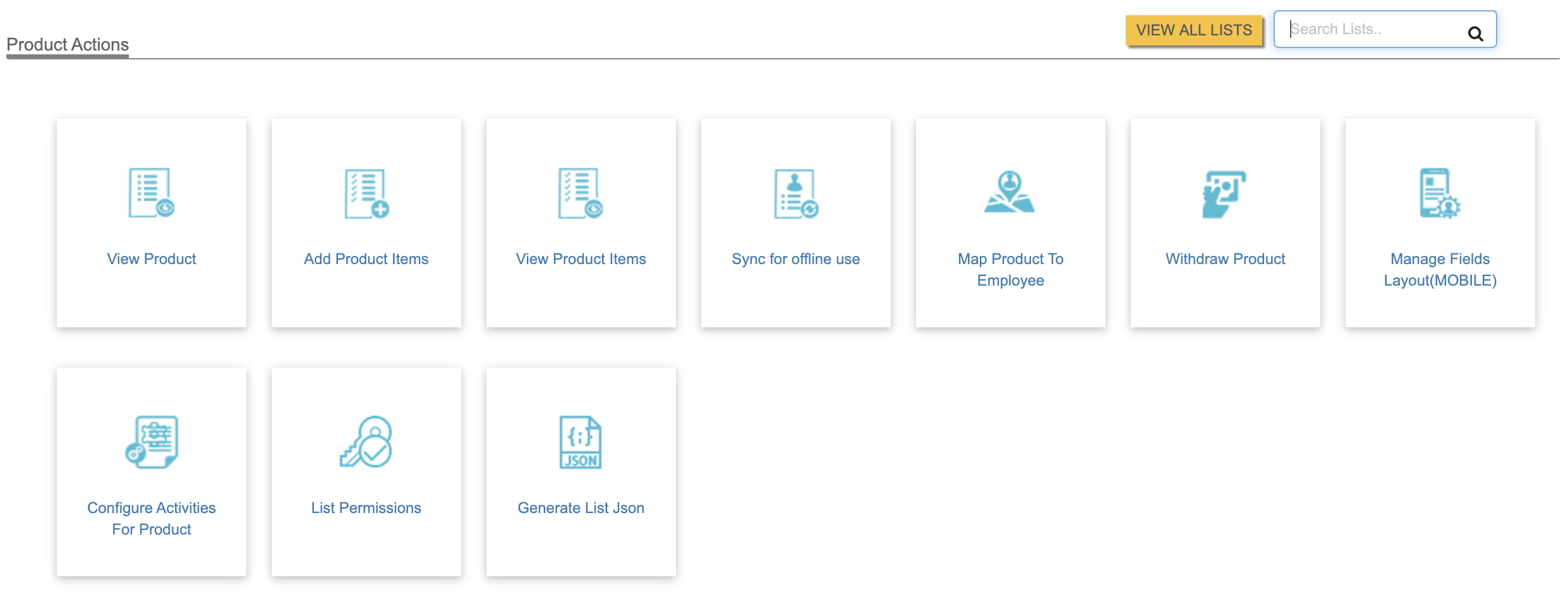 as cards in Product Actions page. Using this interface, you can