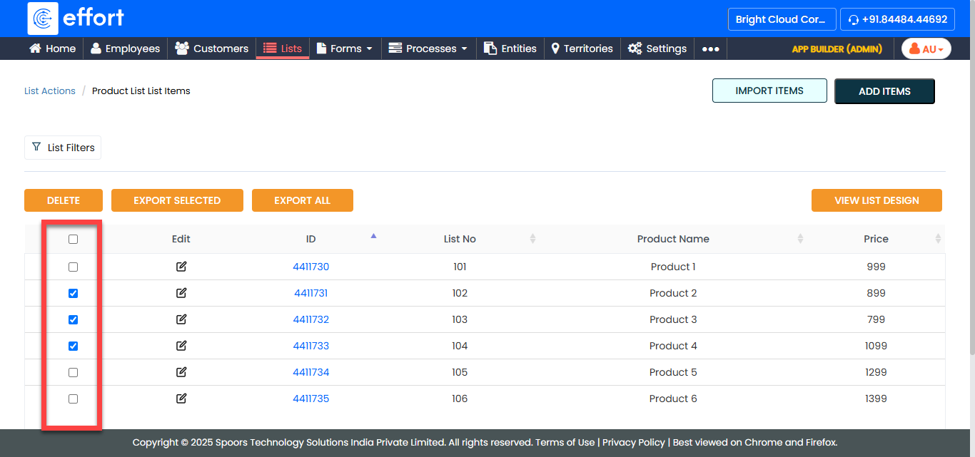 To export selected list items, follow the steps below.