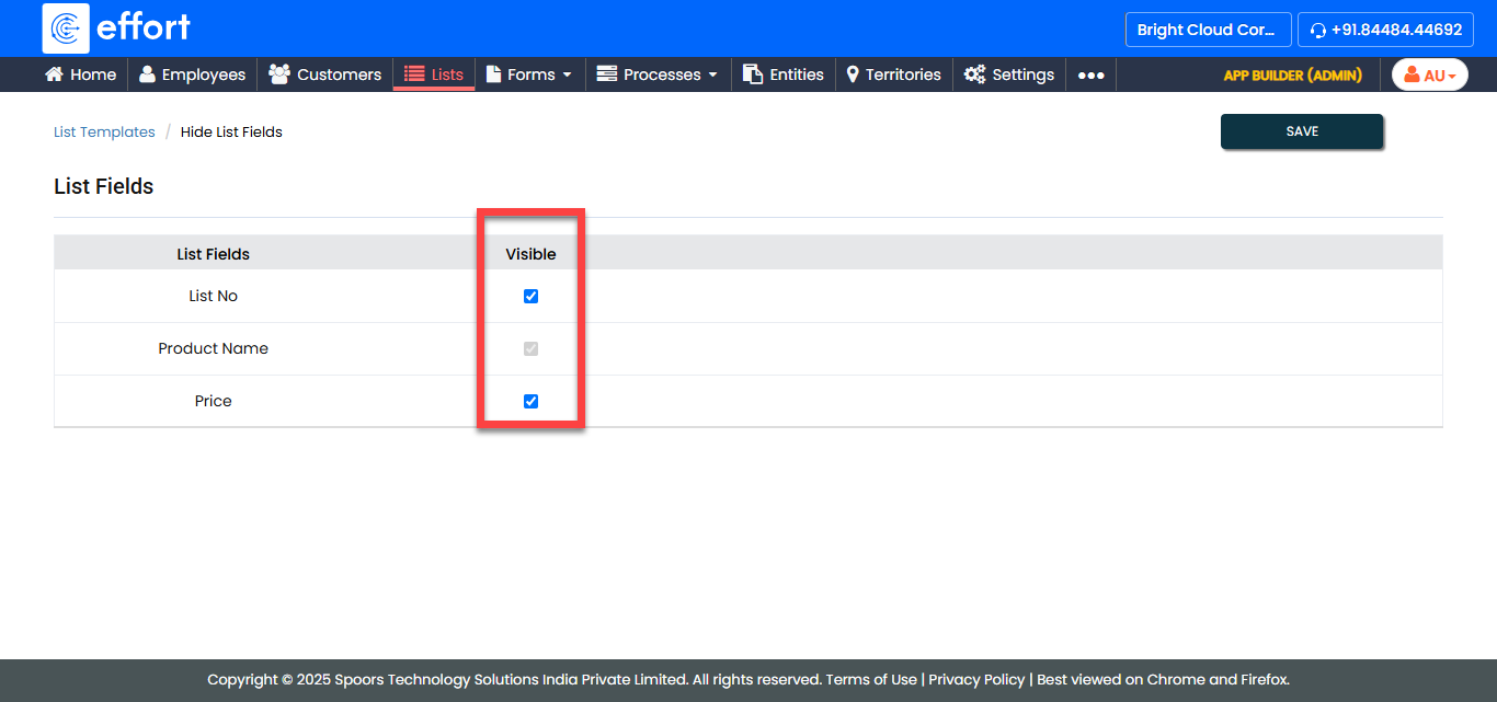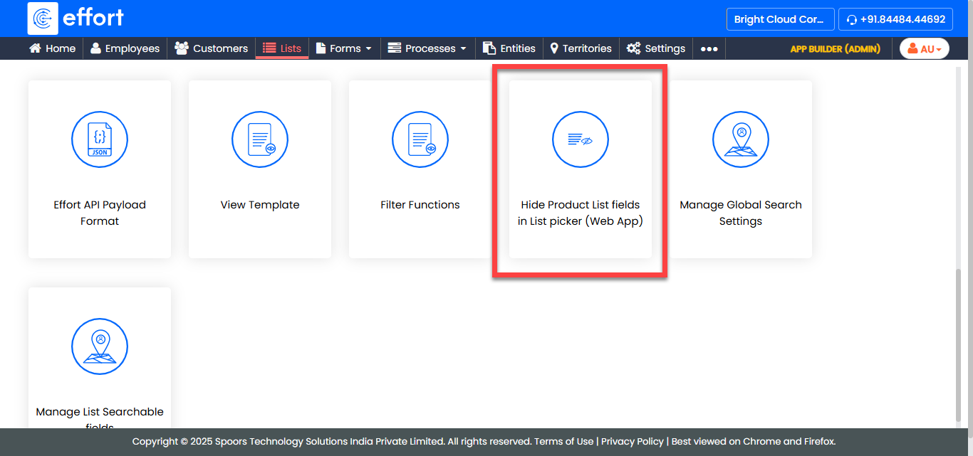 To hide list fields in the list picker (Web App), follow the steps below.