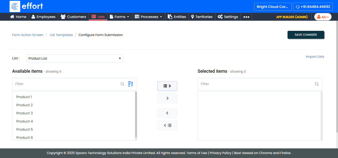Note: If the list has more than 100 items, do not attempt to map all items to all employees. This activity impacts the performance of the mobile app because it consumes a lot of network bandwidth for downloading data and storage on the mobile device.Select one or more items from the Available Items section and click > icon to move them to the Selected Items section.