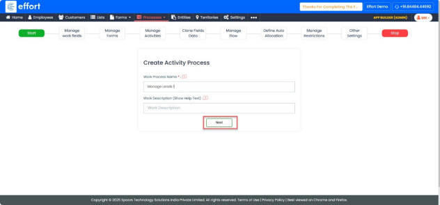 - Enter the “Work Process Name”.