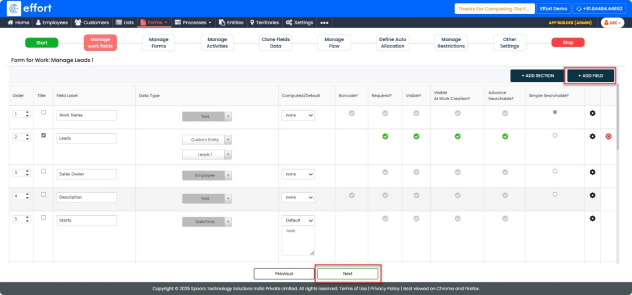 In the Manage Work Fields tab, follow the steps below: