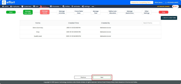 - In the Manage Forms section, skip this step as it is non-mandatory.