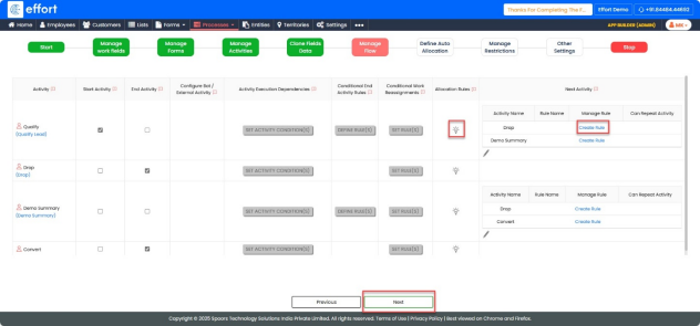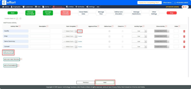 activities. - After Qualify, set the next activity to Demo summary and Drop