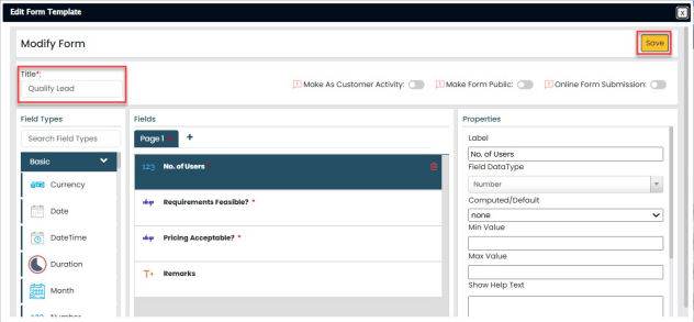 To create a Form Template, follow the steps: