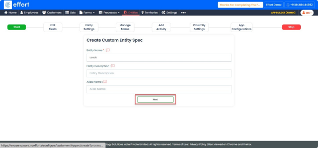 - Enter “Entity Name” field, enter a suitable name for the entity.
