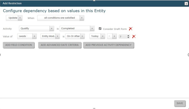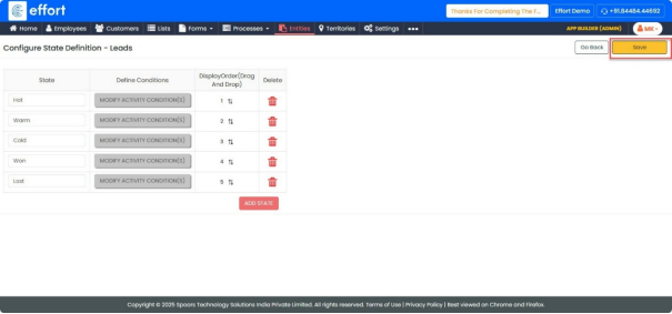 - Click the SET ACTIVITY CONDITIONS(S) for the state.