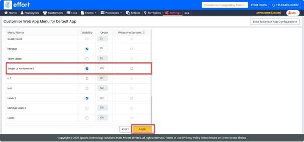 Follow the steps to enable the Target vs Achievement functionality: Step-1