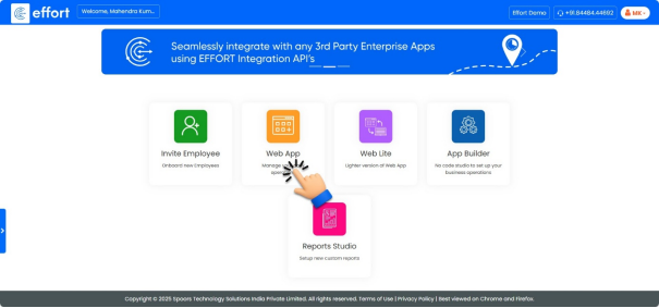 - On the home page, click on the “web App”.