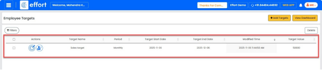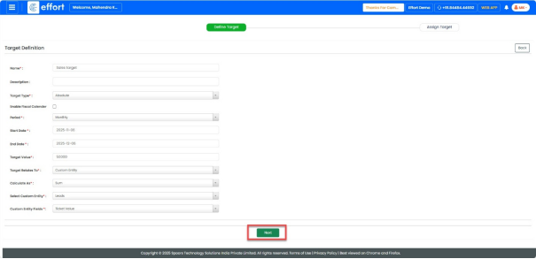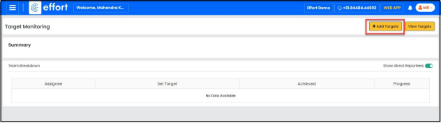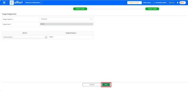 ” button to add the required targets for the sales