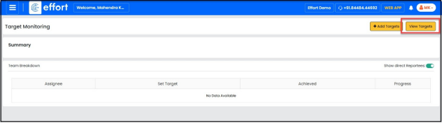 - To view Target vs Achievement, click the “