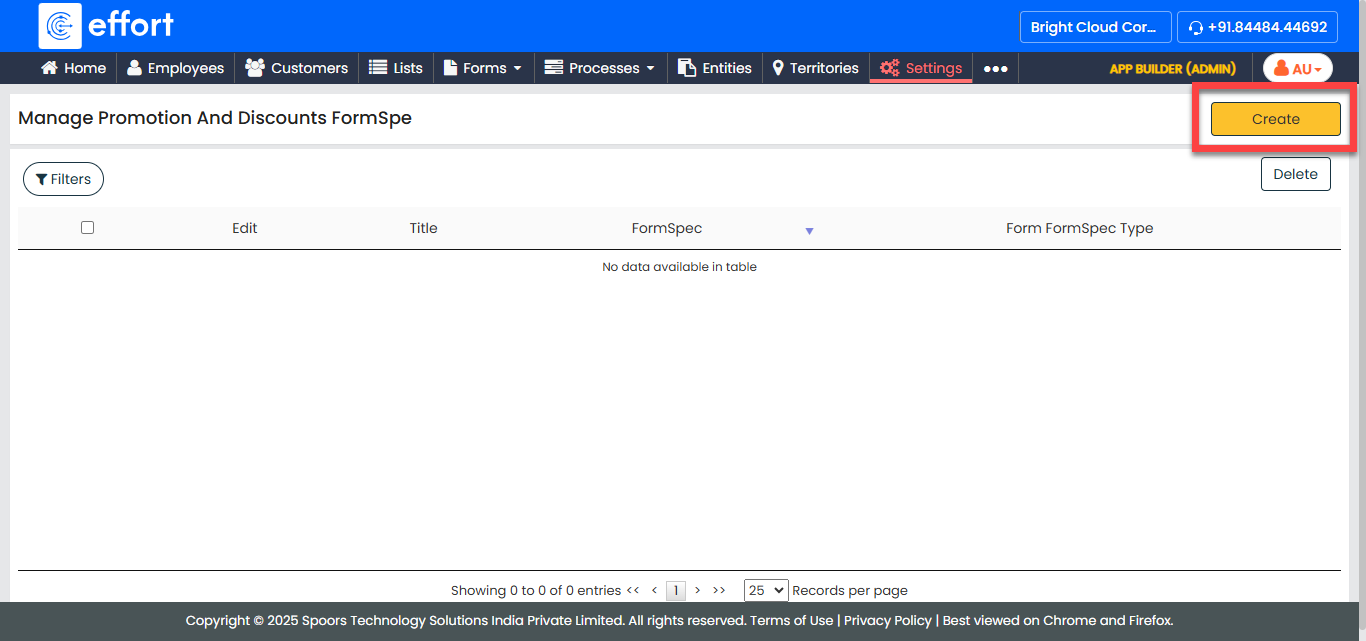 Click the Create button located on the top left