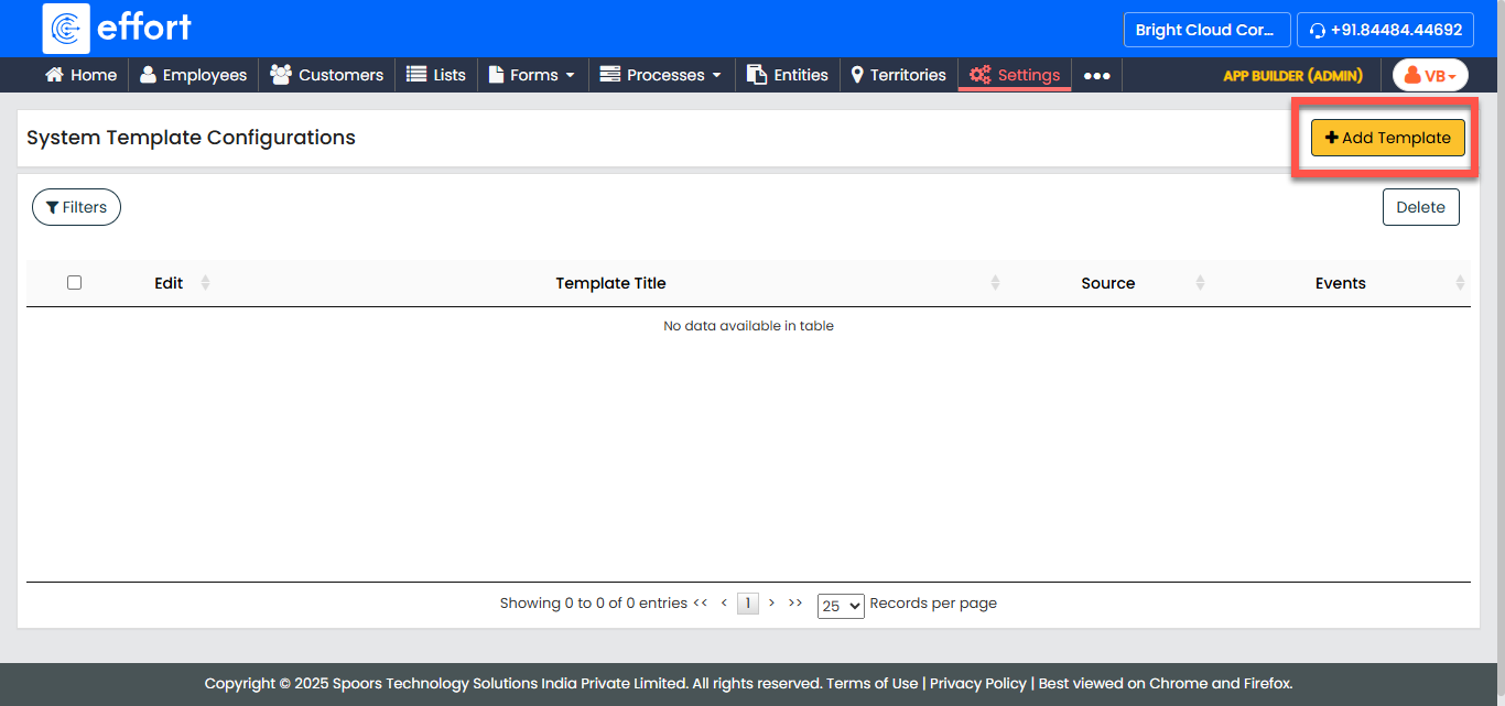 In the System Template Configurations page, click