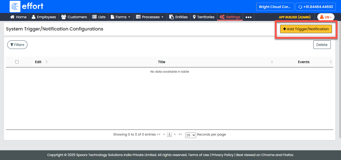 In the System Trigger/Notification Configurations page, click + Add Trigger/Notification.