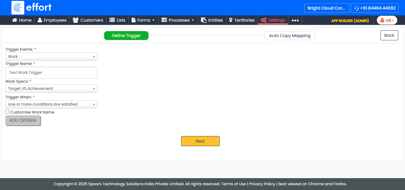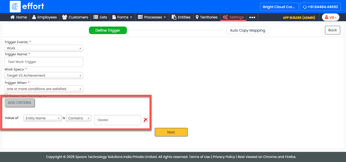 After providing the required details, click Add Criteria to define the conditions for the trigger.