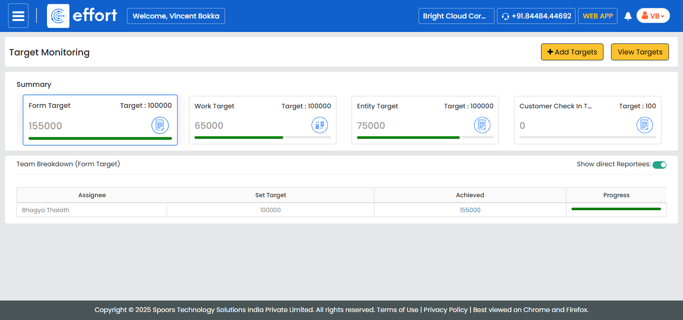 Progress Bar: A visual representation of the percentage of the target met. The progress bar changes color based on the level of achievement: