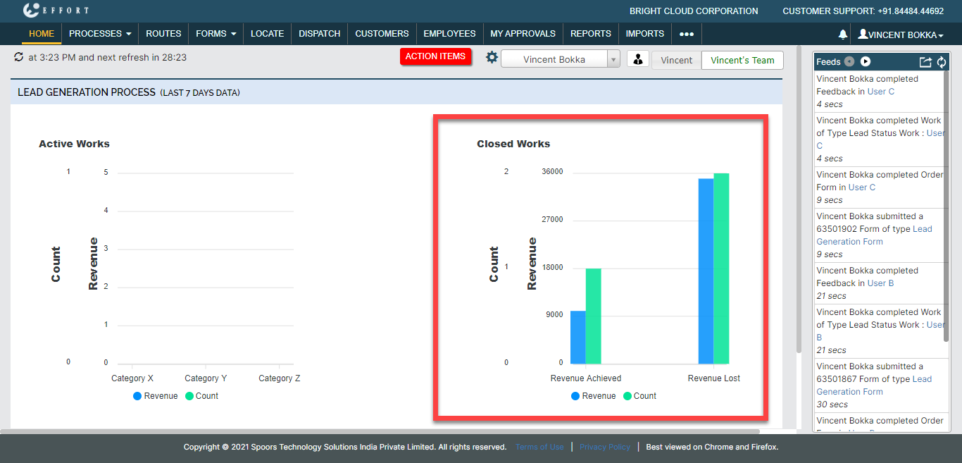 On this dashboard, you can get the lead count and revenue for both active and closed works.