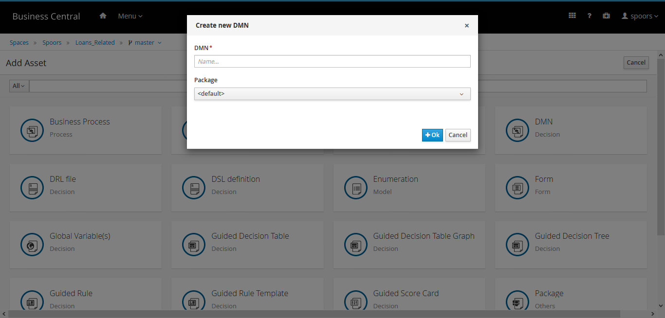 Enter a name for the DMN in the Create New DMN pop-up.