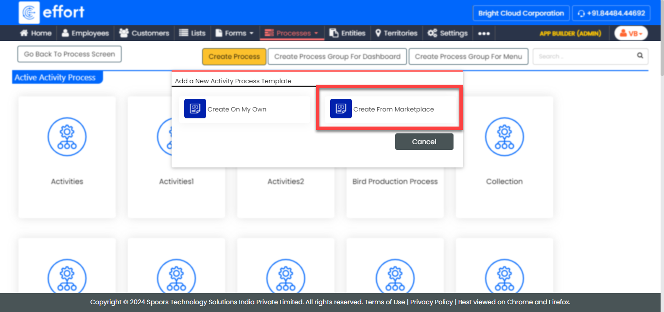 Hover the cursor towards the required process template and click the