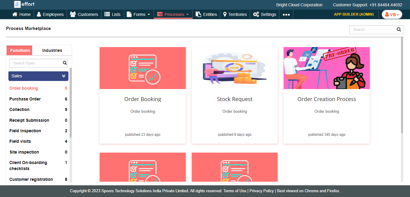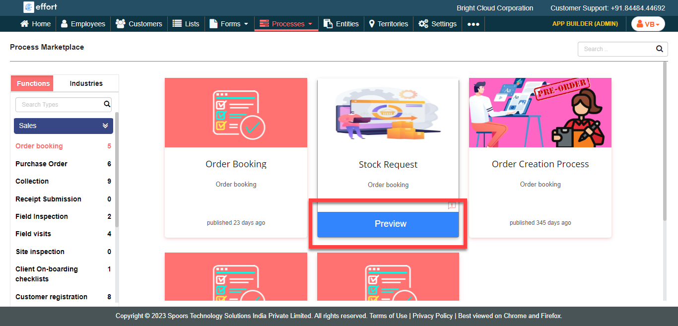 The Process Marketplace page appears with the Functions and Industries buttons on the left.