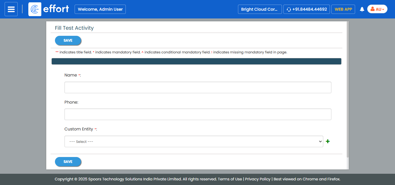 Note: This step is required only if the work activity is configured with a form.Fill in the activity form and click Save.