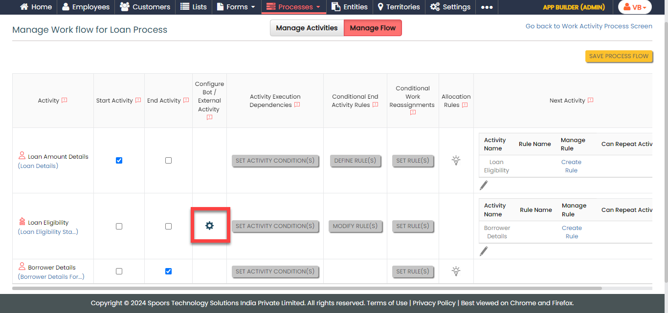The Activity Process page appears.