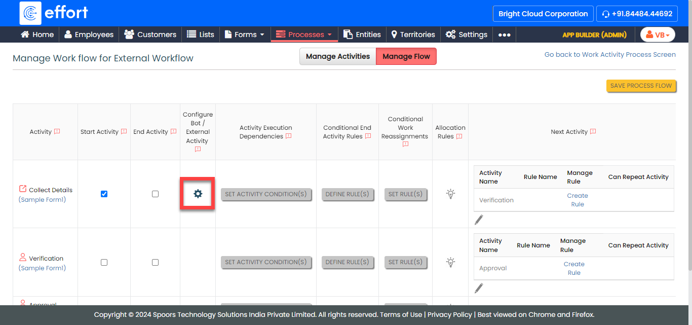 - Click Save Process Flow once the workflow configuration is done.