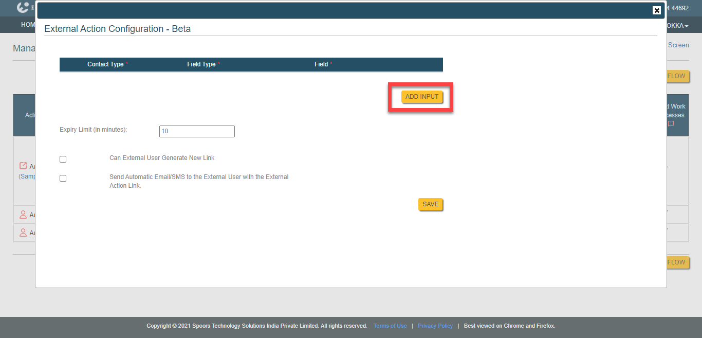 - Expiry Limit (in minutes): Allows you to set the link validity. The work activity link will be valid for the configured duration.