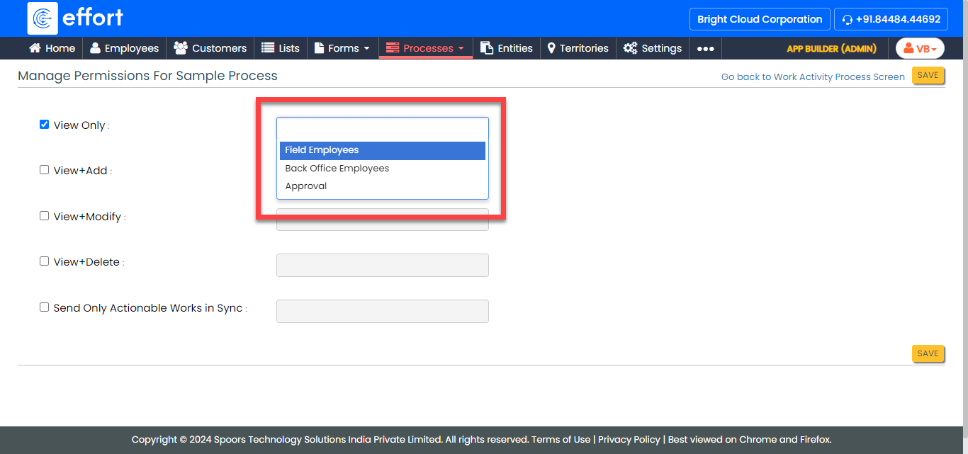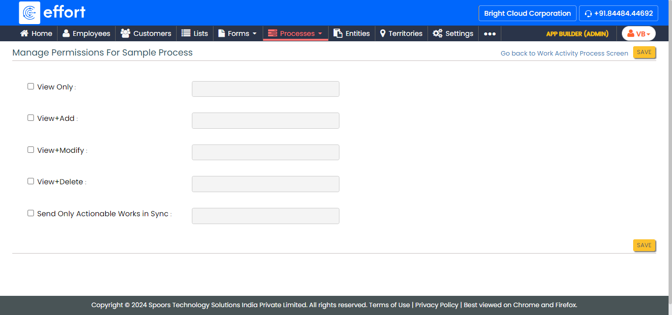 The work processes in the Activity Process are shown in the above screenshot. If you click on the Checklist Process, the work processes in it will appear. -