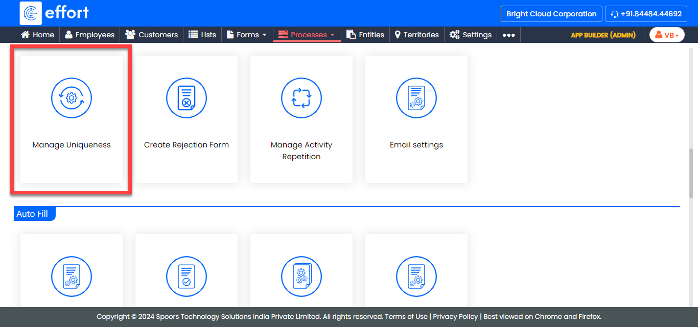 The work processes in the Activity Process are shown in the above screenshot. If you click on the Checklist Process, the work processes in it will appear. -
