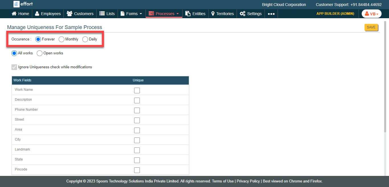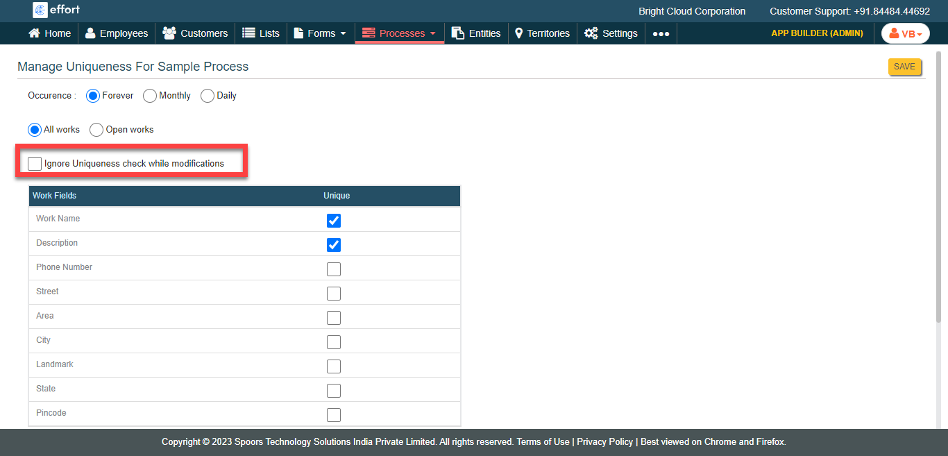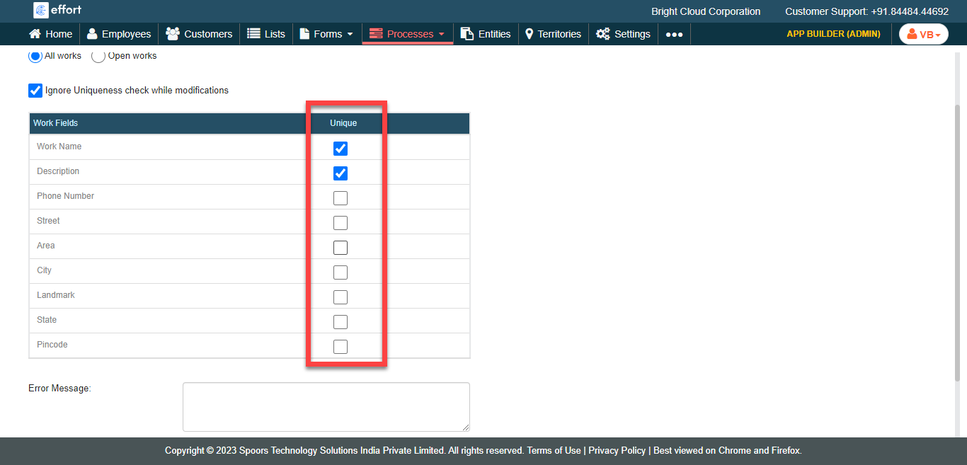 To configure uniqueness to work fields, follow the steps below.