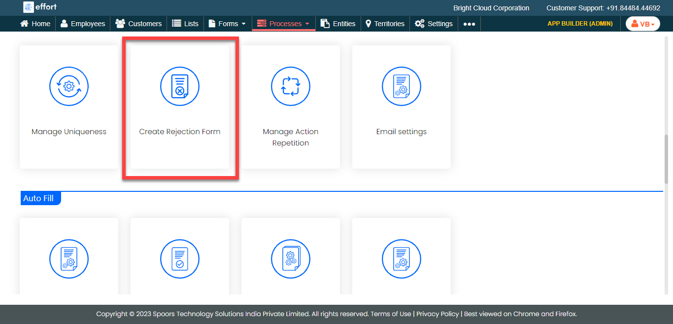 The work processes in the Activity Process are shown in the above screenshot. If you click on the Checklist Process, the work processes in it will appear. -