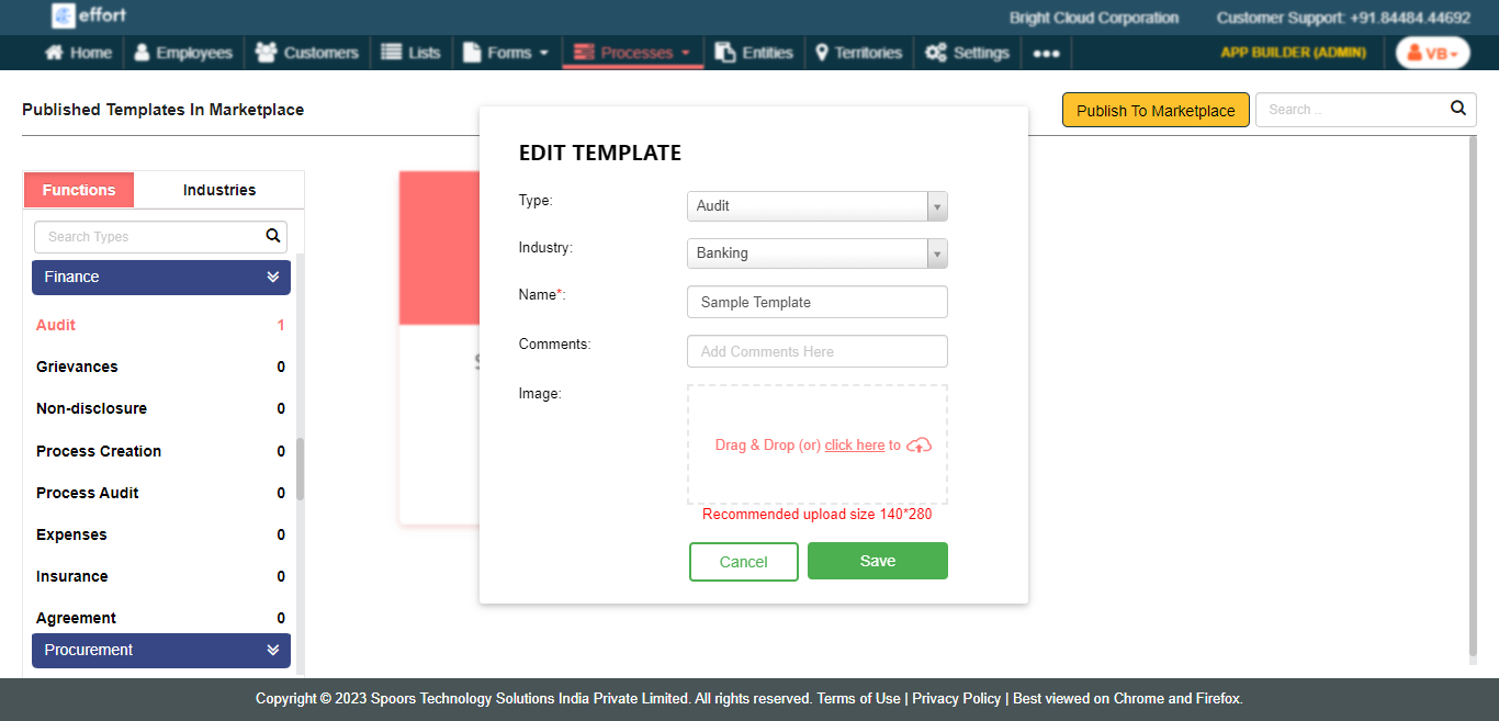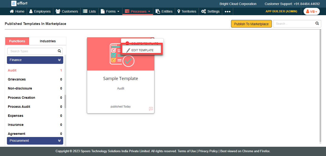 To edit a published marketplace process template, follow the steps below.
