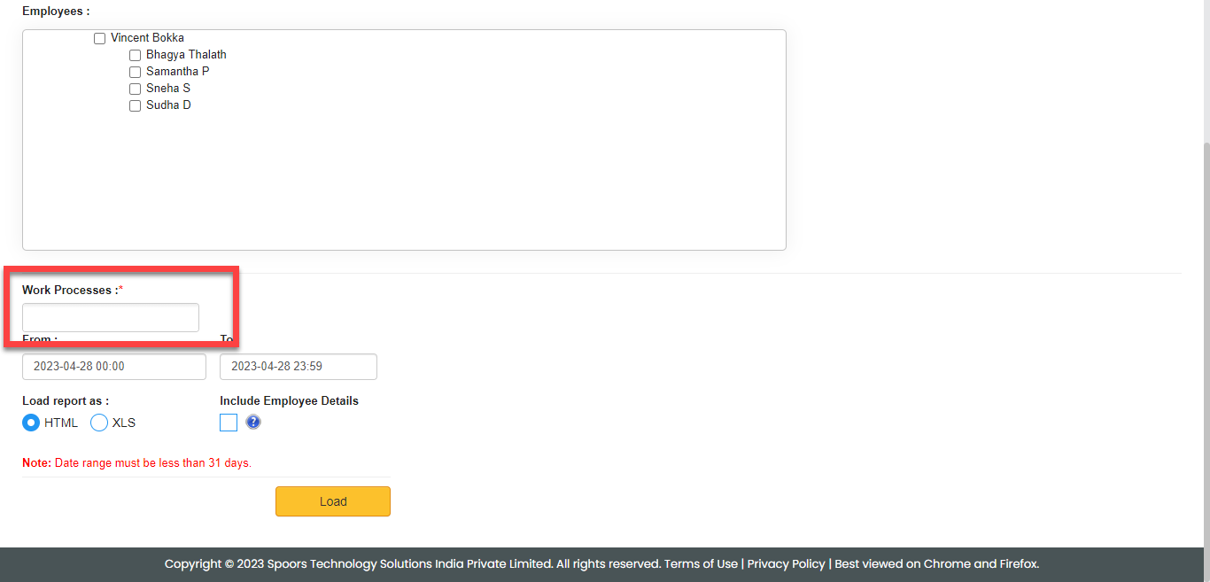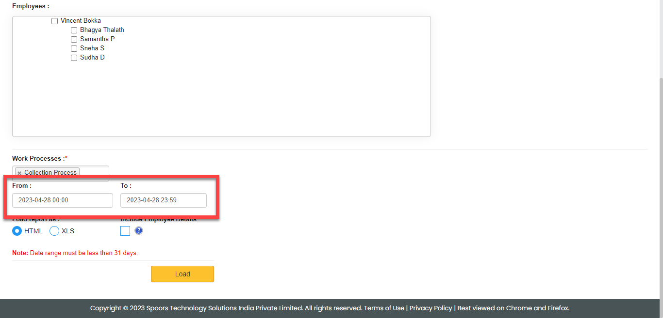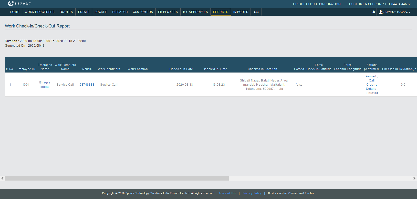The Work Check-In/Check-Out Report is displayed depends on the report format.