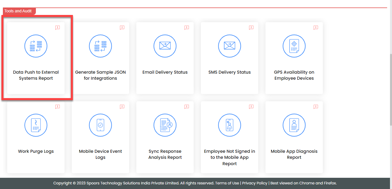 Click the Data Push to External Systems Report link or