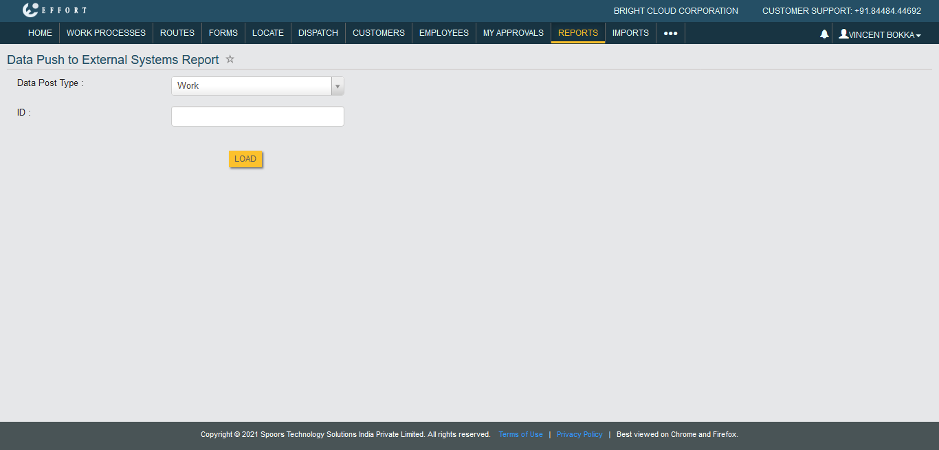 To generate a data push to external systems report for works, follow the steps below.