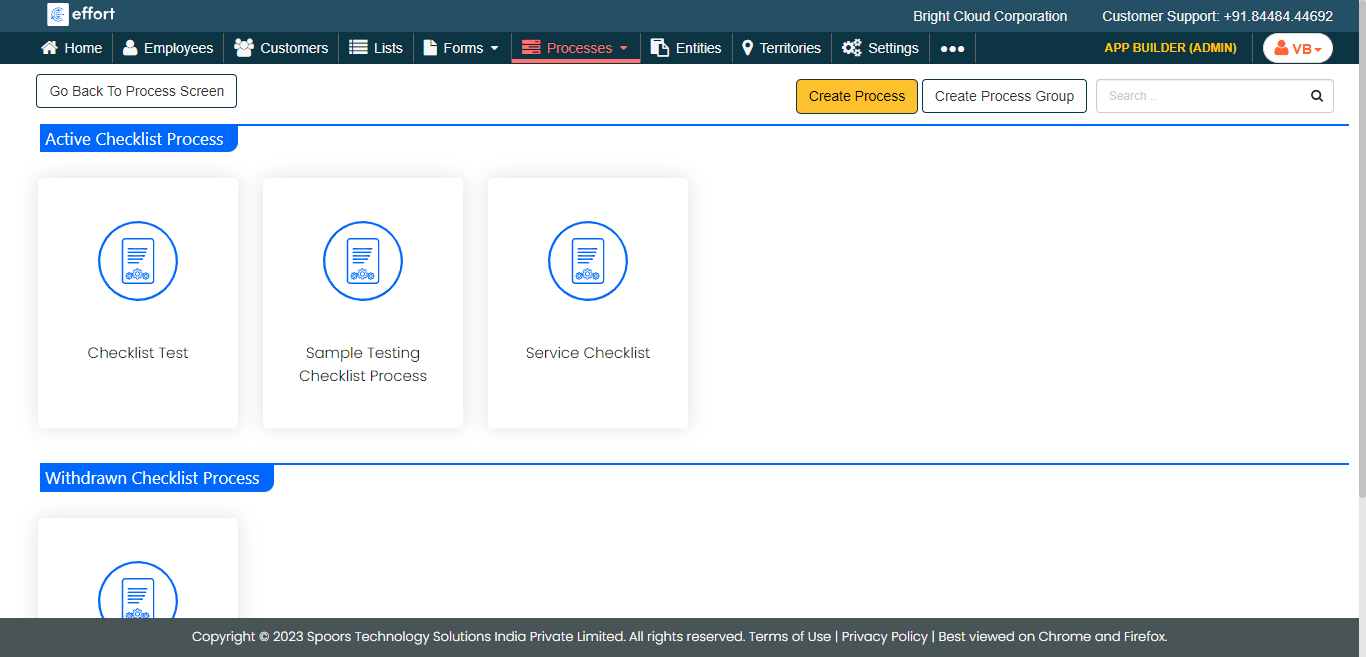 Click on the required checklist process card.