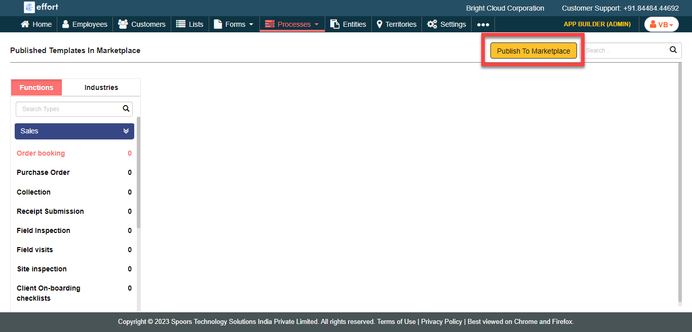 To publish a process template in marketplace, follow the steps below.