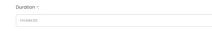 The Duration data type enables you to input durations or time intervals, such as hours, minutes, and seconds. In the Web App, the Duration field appears as shown in the image below: ![]() |
