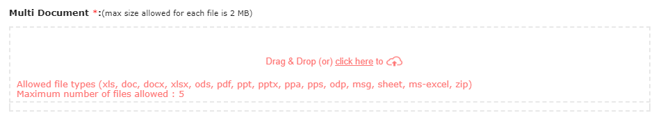 are pdf, doc, xls, etc. The below image shows how a Multi Document field