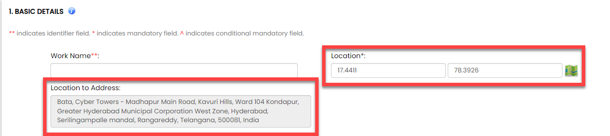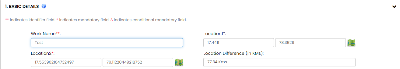 ![]() The difference between location1 and location2 is displayed automatically in the location difference field. |