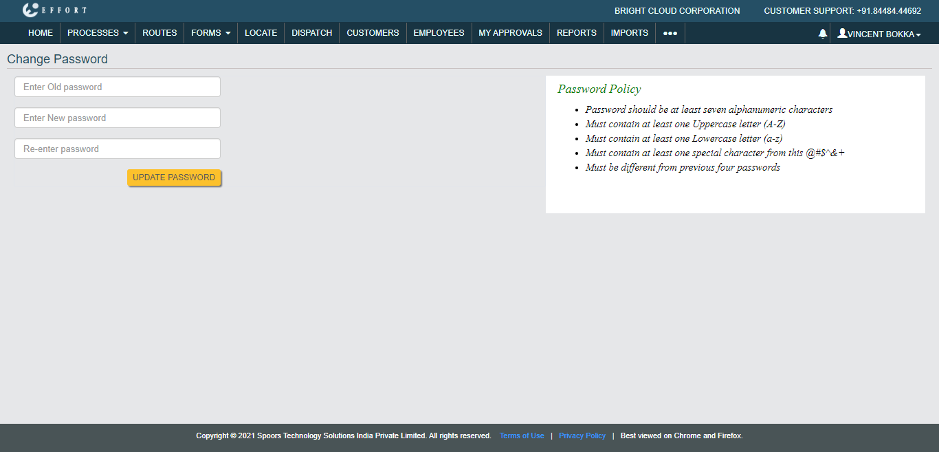 - Click UPDATE PASSWORD button.